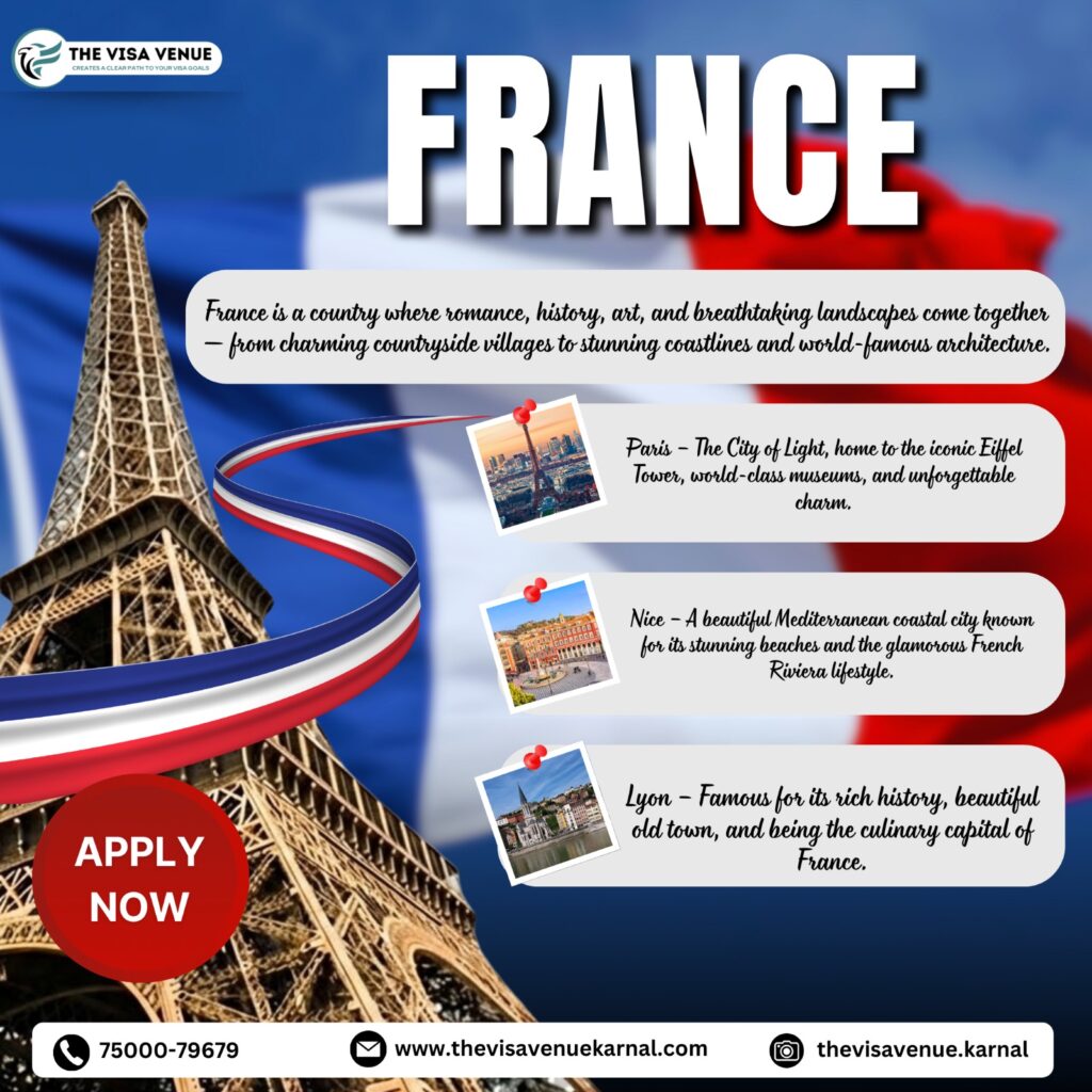 France is not just a country — it is an emotion. From the romantic streets of Paris to the glamorous coastline of Nice and the culinary brilliance of Lyon, France offers experiences that stay with you for a lifetime.